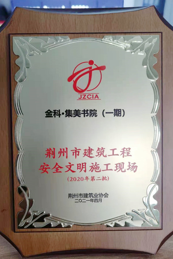 近日,中泽集团荆州金科集美书院(一期)项目荣获由荆州市建筑业协会颁发的“荆州市建筑工程安全文明施工现场”称号。